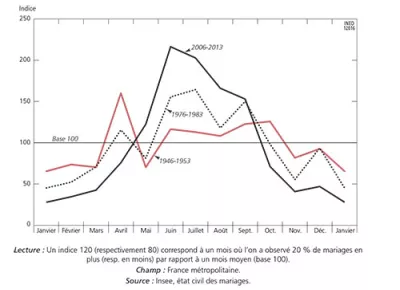 La saisonnalité des mariages (1946-2013)
